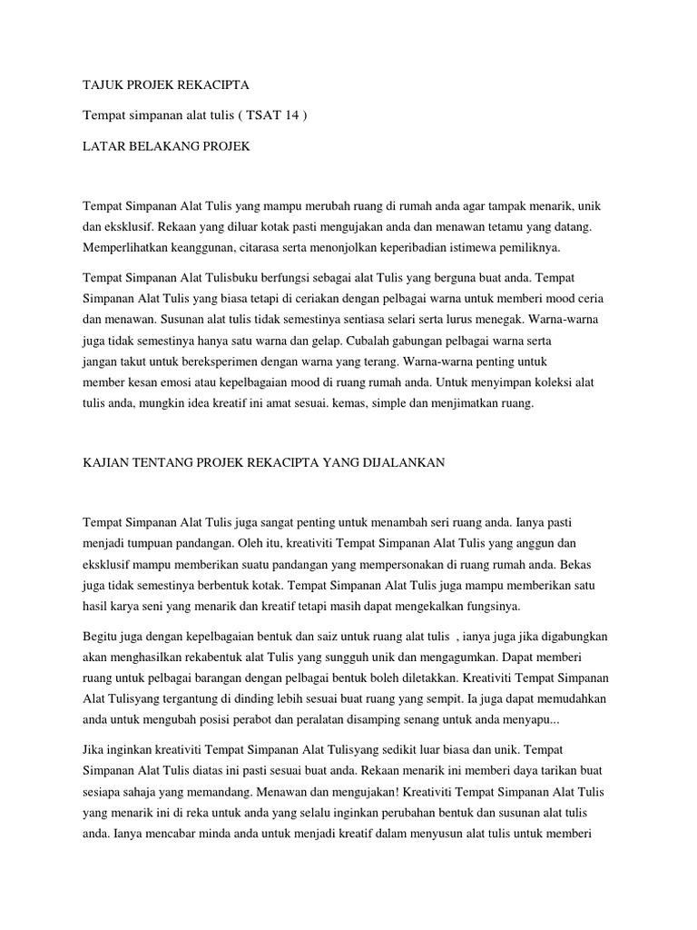 Lakaran Projek Lakaran Tempat Letak Alat Tulis