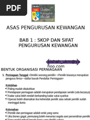 Bab 1 Bab 1 Keusahawanan Dan Perniagaankeusahawanan Dan Perniagaan Jenis Pemilikan Perniagaan Milikan Tunggal Ciri Mili