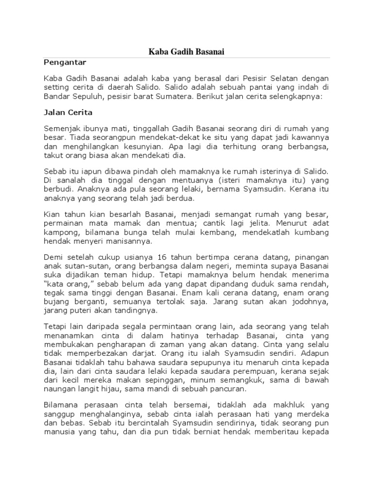 Kaba Gadih Basanai Pengantar