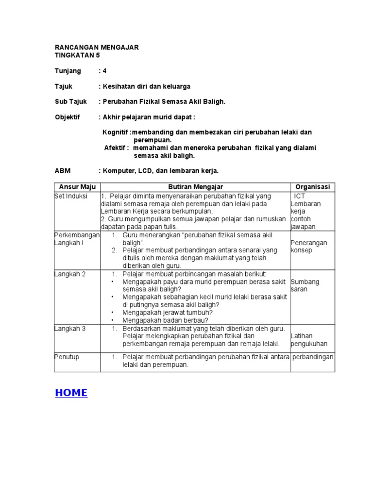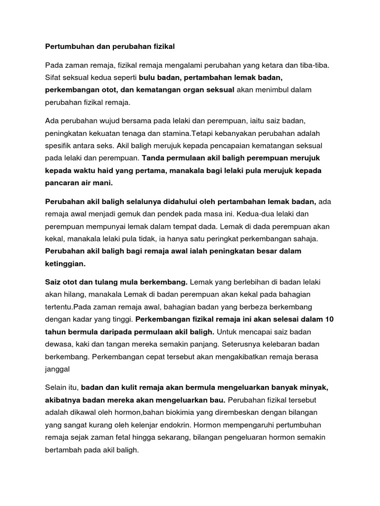 Perubahan Fizikal Lelaki Dan Perempuan Apabila Memasuki Alam Remaja Docx Document