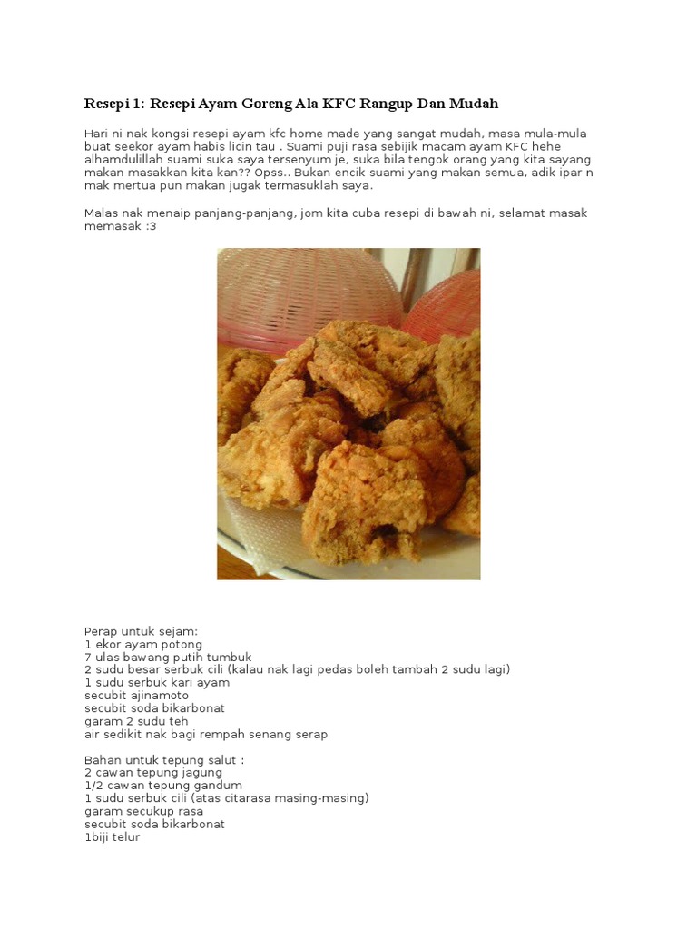 Resepi Ayam Kfc Mudah Dan Sedap Nice Info E